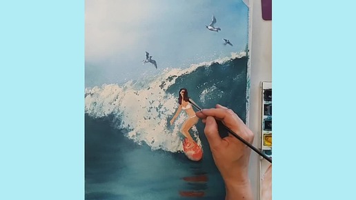 Сёрфинг. Акварельная практика с маскирующей жидкостью