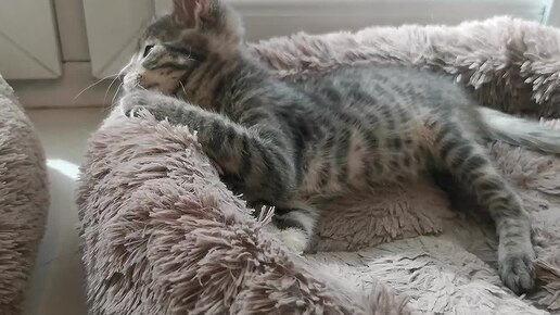 Кузя Нику выгнал с лежанки и доволен 😂😂