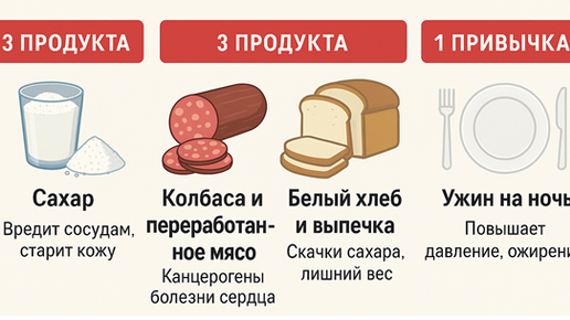 Совет биохимика о том, как исключая из питания три продукта и одну привычку, можно продлить жизнь на 20 лет