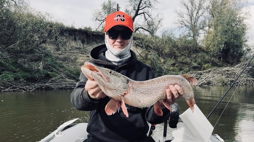 Мощный удар из под коряг. Чуть не убились на лодке. #рыбалка #спиннинг #осень #2025 #хищник #речка #щука #поклевка #джиг