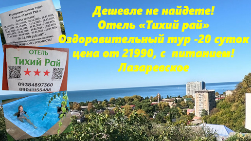 Дешевле не найдете! Отель "Тихий рай" ,оздоровительный тур 20 суток -от 21990р. с 3х разовым питанием. Лазаревское.