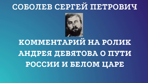 КОММЕНТАРИЙ НА РОЛИК АНДРЕЯ ДЕВЯТОВА О ПУТИ РОССИИ И БЕЛОМ ЦАРЕ
