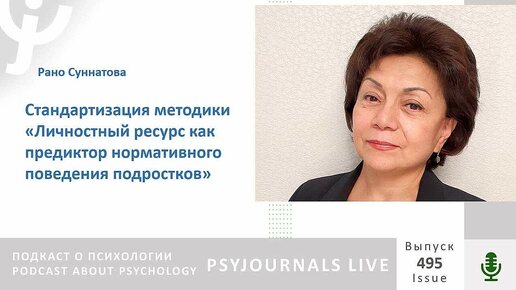 Суннатова Р.И. Стандартизация методики «Личностный ресурс как предиктор нормативного поведения подростков»