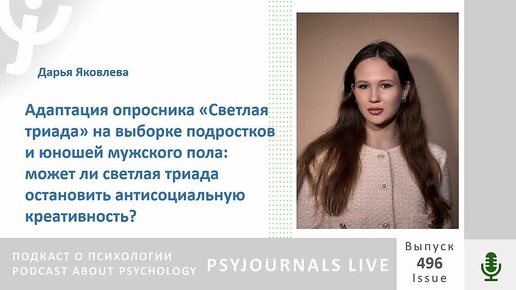 Яковлева Д.В. Адаптация опросника «Светлая триада» на выборке подростков и юношей мужского пола