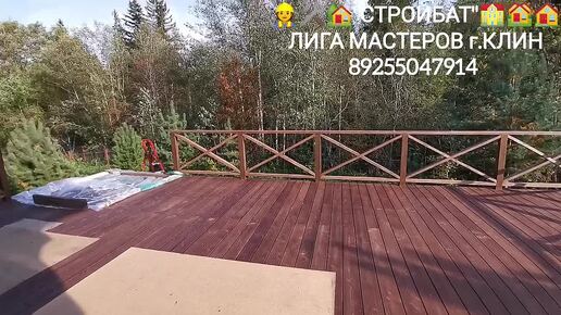 ОТКРЫТАЯ ТЕРРАСА К ДОМУ 🏡 ТЕРРАСА НАСТИЛ ПАЛУБНАЯ ДОСКА ЛИСТВЕННИЦА С ПЕРИЛАМИ ПО ПЕРИМЕТРУ 👷🛠️🏘️
