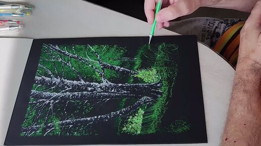 Техника рисования на черной бумаге шариковой ручкой! 2025