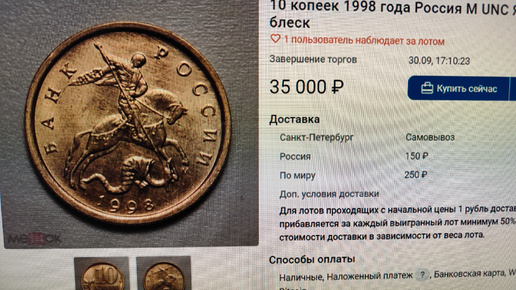 10 копеек 1998 года. СП. Цена стоимость монеты разновидности и браки.