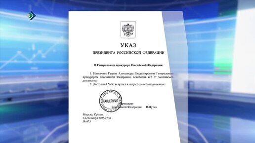 Владимир Путин подписал указ о назначении Александра Гуцана новым генеральным прокурором
