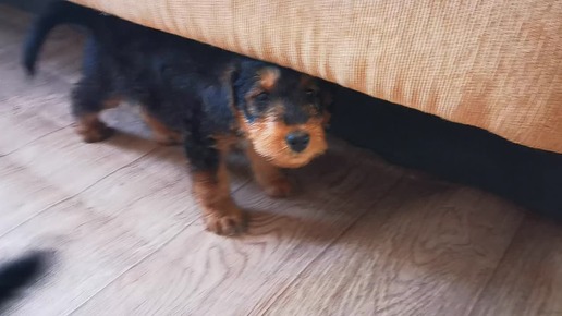 Щенки породы эрдельтерьер играют