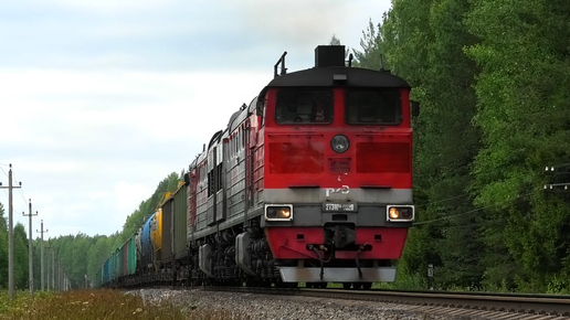 2ТЭ10У-0020 с грузовым поездом и приветливой бригадой