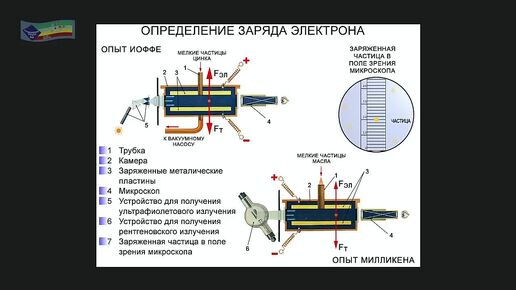 Схема экспериментальных установок Иоффе и Милликена по определению величины элементарного заряда