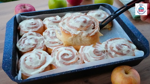 Булочки "Синнабоны" с яблоками и кремом: мягкие как пух, сочные и очень вкусные булочки! Знаменитые булочки с новым вкусом!
