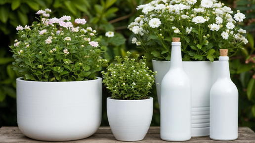 Два стильных проекта для дома: белоснежное кашпо и креативный декор из бутылок