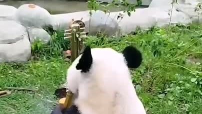 панда Катюша играет на балалайке, а потом съест ее за милую душу