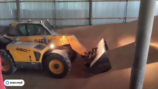 Работа по погрузке нута внутри склада: от ковша до кузова