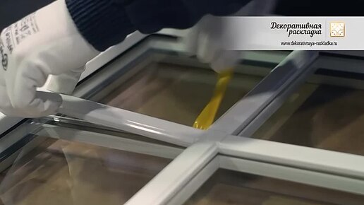Монтаж на окна фальш-переплета "Виктория Классик" 25х7мм на производстве. Декор для окон, накладные шпросы, декоративный переплет на окна.