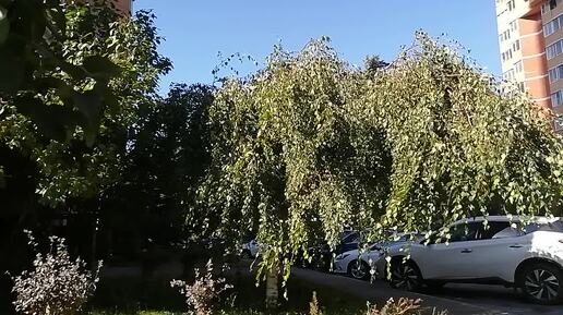 Береза Юнги. Крона в сильный ветер в сентябре
