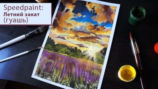 Рисуем закат гуашью. Пейзаж с закатом - живописный этюд Speedpaint
