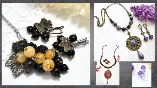 Ягоды смородины из стекла. Эффектные колье и серьги. Украшения с муранскимим бусинами и камнями.