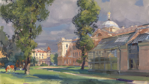 20250905 Академический садик. Петербург. Пленэрный этюд гуашь