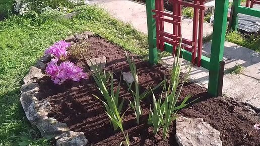 Покрасила старую арку, сходили за хвойным опадом, пилю рейки и устанавливаю