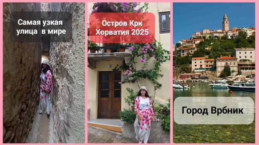 Остров Крк. Хорватии 2025. Город Врбник. Самая узкая улица в мире.