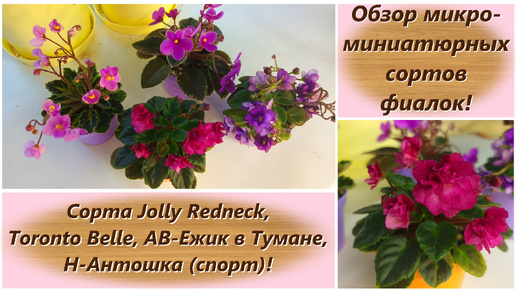 Обзор микро-миниатюрных сортов фиалок! Сорта Jolly Redneck, Toronto Belle, АВ-Ежик в Тумане, Н-Антошка (спорт)!