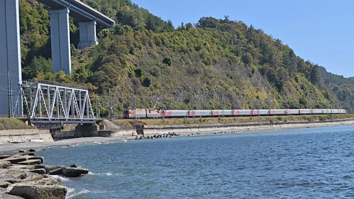 мост через Каткову щель и 2ЭС4К-084 с поездом №460 Адлер–Воронеж/Тамбов