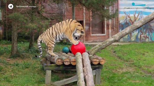 тигр Тамерлан и его красный мячик