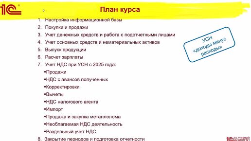 Анонс курса "Ведение учета при применении упрощенной системы налогообложения (УСН) и учет НДС"