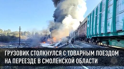 18 вагонов с бензином сошли с рельсов под Смоленском после столкновения с грузовиком