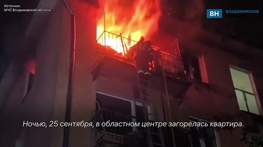 Появились кадры тушения пожара в многоквартирном доме Владимира