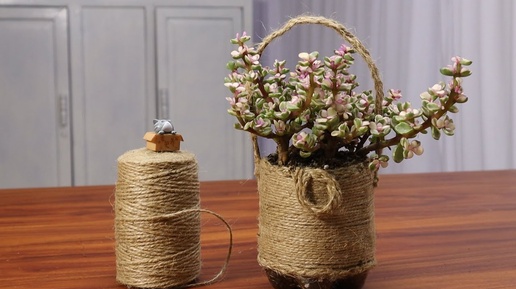 Посадка суккулентов — корзина своими руками из джутовой веревки и переработанного пластика