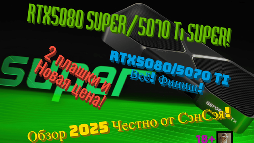 Новости NVIDIA! RTX5080 SUPER/5070 Ti SUPER! 2 плашки и Новая цена! RTX5080/5070 TI Всё! Финиш! Обзор Честно от СэнСэя!