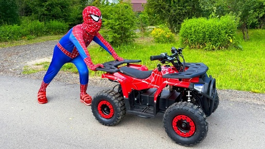 Дети стали Супергероями и катаются на детских машинках!