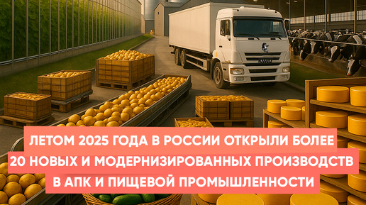 Летом 2025 года в России открыли более 20 новых и модернизированных производств в АПК и пищевой промышленности