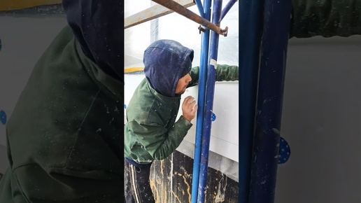 Формируем уклон под установку подоконного отлива, срезали ножовкой и зашкуриваем наждачной тёркой