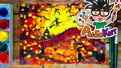 Осенний шабаш из сказки Маленькая Баба Яга - уроки рисования для детей