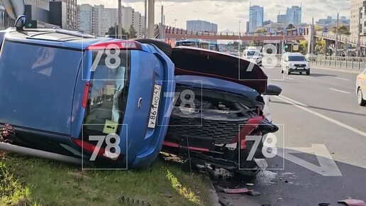 Белый кроссовер опрокинул синий Ford во Фрунзенском районе
