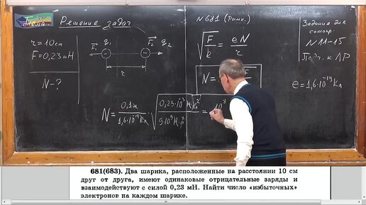 Задача на определение "избыточных" электронов на двух отрицательно заряженных шариках, расположенных на заданном расстоянии друг от друга