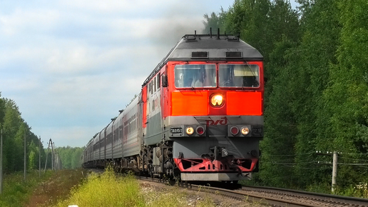 ТЭП70-0572 с пассажирским поездом Воркута — Адлер и приветливой бригадой