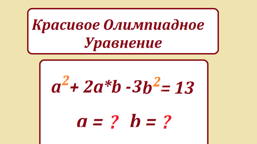 Решите красивое Олимпиадное уравнение. a^2 + 2 * a * b - 3 b^2 = 13