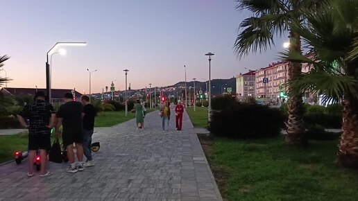 ФТ Сириус. Ранний вечер в конце сентября. Прогулка по бульвару Надежд. Набережная закрыта, потому на бульваре многолюдно.
