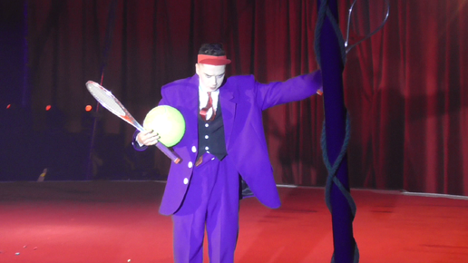 Клоун с теннисными ракетками. Большой надувной жёлтый шар. Цирк с симфоническим оркестром в городе Орле, 2025 год. Город Орёл