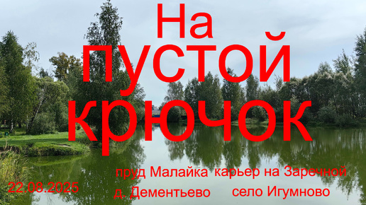 На пустой крючок. пруд Малайка в д. Дементьево и карьер на Заречной в селе Игумново 22.08.2025.