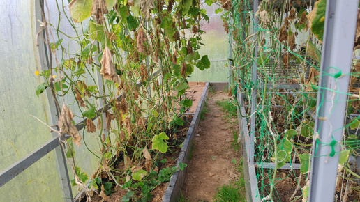Лен зацвел, теплицу с огурцами не стала убирать...
