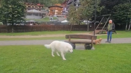 Мареммо-абруцкая овчарка гуляет без поводка и намордника. Это наш производитель