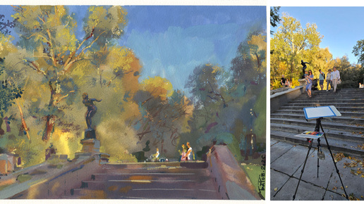 20250922 Нескучный сад. Москва. Натурный этюд гуашь
