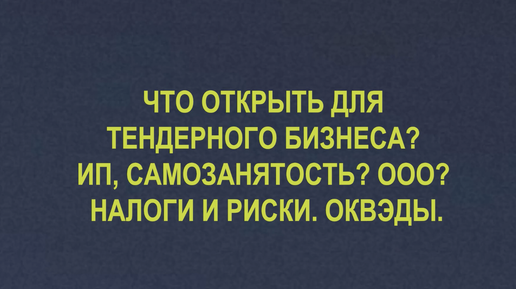 Что открыть для тендерного бизнеса? ИП? Самозанятость? ООО? Налоги, рискт, ОКВЭДы