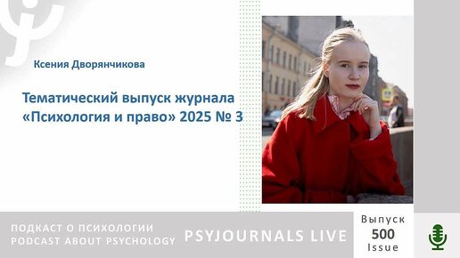 Дворянчикова К.Н. рассказывает о тематическом выпуске журнала «Психология и право» 2025 № 3